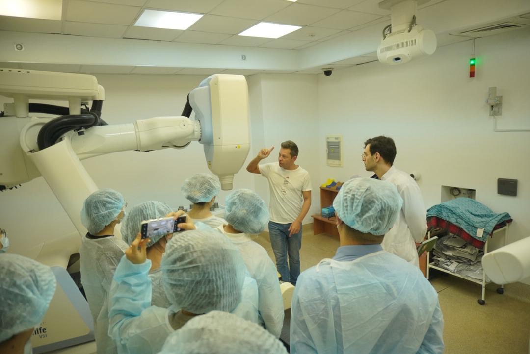 «Мы посетили два филиала Центральной клинической больницы «РЖД Медицина», уделив особое внимание интервенционному отделению. Врачи рассказали о своём рабочем процессе. И когда мы спросили о том, как стать интервенционным сосудистым хирургом в России, то узнали, что для этого требуется шесть лет общемедицинского образования и два года специализированной подготовки, аналогичной китайской. Мы также смогли понаблюдать за ходом сердечно-сосудистой операции в режиме реального времени», — Юй Чэнхан.