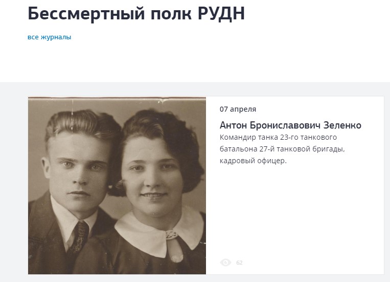Газета «Дружба» и профессиональное студенческое объединение «Музыкальная планета» филологического факультета РУДН предлагает создать Виртуальный Бессмертный полк РУДН. Присылайте истории своих мам и пап, дедушек и бабушек, прадедушек и прабабушек, а также их знакомых в редакцию газеты, а мы разместим их на странице проекта на официальном сайте.