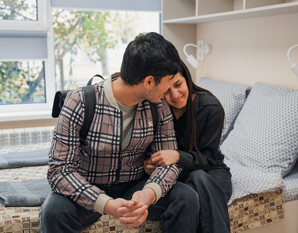 Главная трудность для Ходихона и Фаризы была в том, что они жили раздельно: «Три месяца для нас были очень сложными, потому что я жил на втором этаже, а она на пятом... Были моменты, когда мы ели из контейнеров прямо на лестничной клетке, чтобы никому не мешать, но вот теперь все сложности позади... и вот наконец-то нам дали семейное общежитие, и мы этому очень рады!»