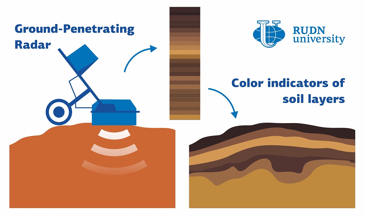 «Цвет — одно из основных свойств почв, изначально он служил основой для их классификации. Именно поэтому названия многих почв ассоциируются с цветом. При этом цвет любого объекта определяется особенностями отражения от него электромагнитных волн. А это в свою очередь определяется свойствами самого объекта и зависит от его материального состава. Теоретически для определения такого сложного свойства почвы как цвет можно использовать методы георадарного профилирования. Нашей целью был поиск взаимосвязи цвета слоев почвы с данными георадарного профилирования», — доктор сельскохозяйственных наук Игорь Савин, профессор Аграрно-технологического института РУДН.