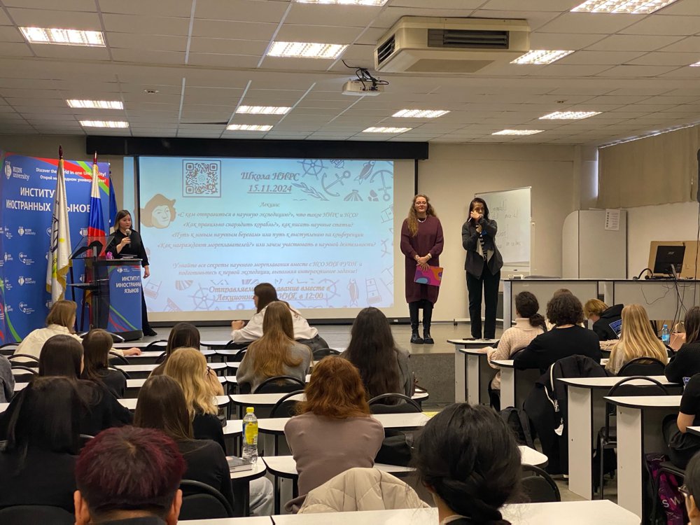 Научное студенческое сообщество института иностранных языков РУДН в этом году заняло второе место на конкурсе среди вузовских НСО. И не спроста — научные кружки ИИЯ регулярно побеждают в различных конкурсах, а активисты общества организовывают для студентов встречи с представителями их будущих профессий, разговорные языковые клубы, экскурсии и множество других полезных мероприятий.