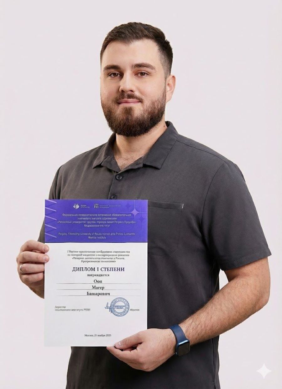 На конференции также прошёл конкурс постерных докладов среди молодых учёных. Работа аспиранта кафедры пропедевтики стоматологических заболеваний медицинского института РУДН Оона Магера Башаровича (Сирия) заняла первое место среди медицинских вузов. Тема его исследования — «Клинико-рентгенологическое обоснование применения лазерного излучения при удалении зубов». Мы поговорили с победителем и узнали, в чём суть его доклада, какова польза результатов исследования и какие у него дальнейшие планы по развитию этой работы.